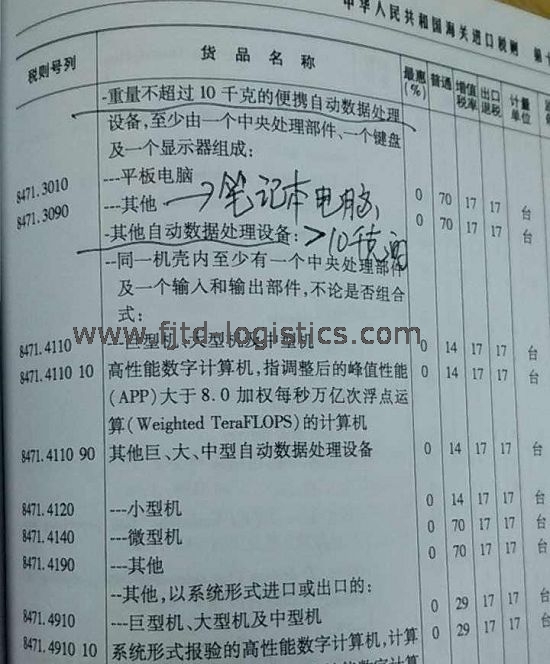 普通的台式电脑基本都归到:8471414000:微型自动数据处理设备(微型机);我们不是经常听到“微机”嘛。所谓微机,就是微型机啦。