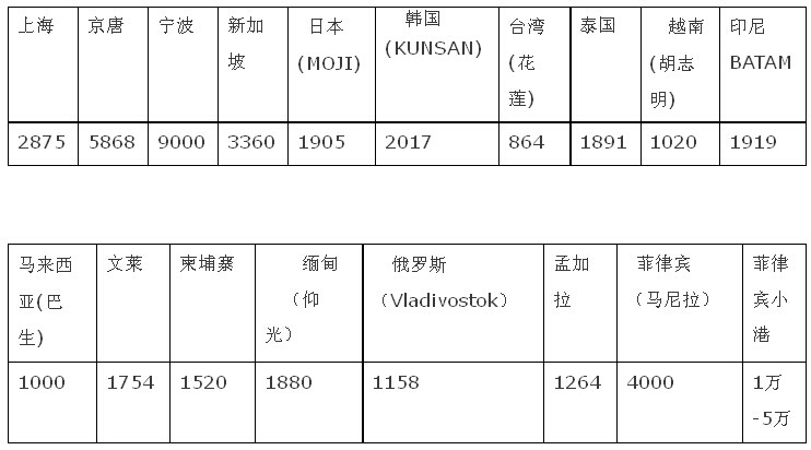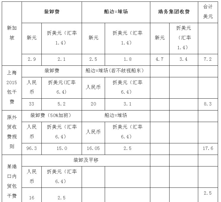 从上表对比可以见,上海港的2015年包干装卸费已趋合理,尽管比新加坡稍高,但是提供港方机械,装卸速度大为提高。当然,新加坡的装卸费是很贵的,比台湾、韩国贵得多,是泰国、越南的2-3倍。