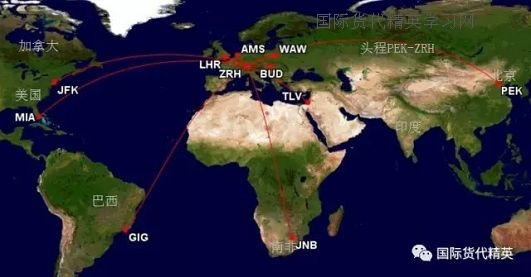 2. 区域中标红色的目的站为窄体飞机续程,无卡车,但对于大宗货物可以申请开通卡车,需单询。