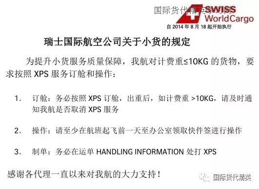 1. 订舱:务必按照XPS订舱,出重后,如计费重>10KG,请及时通知我航是否取消XPS服务。
