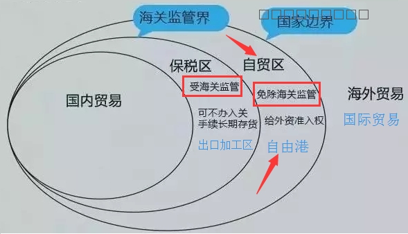 自由贸易港是指一国的部分领土内运入任何货物,被认为在关境以外,并免于实施惯常的(并非完全不受海关监管)海关监管制度。比如巴拿马科隆自贸区、德国汉堡自贸区、比利时安特卫普港、荷兰鹿特丹港、新加坡、中国香港等。